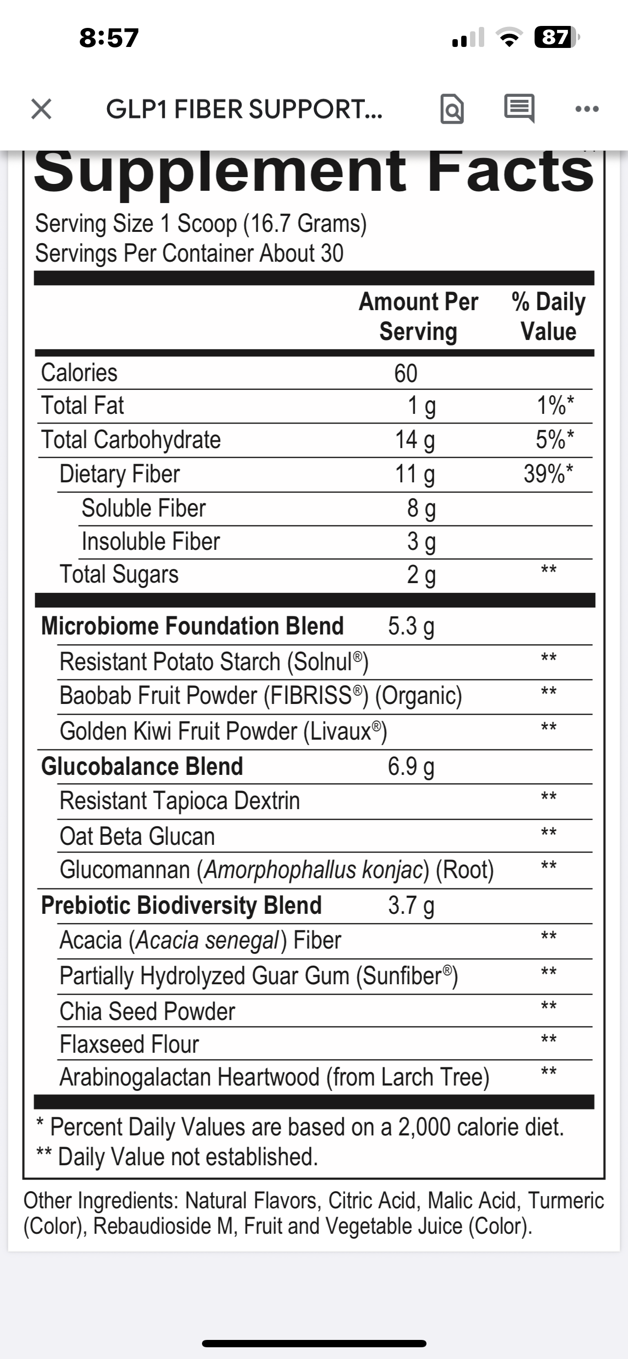 Fiber GLP-1 is a next-generation fiber supplement designed to promote a healthy gut microbiome, support satiety and weight management and aid in healthy bowel function.